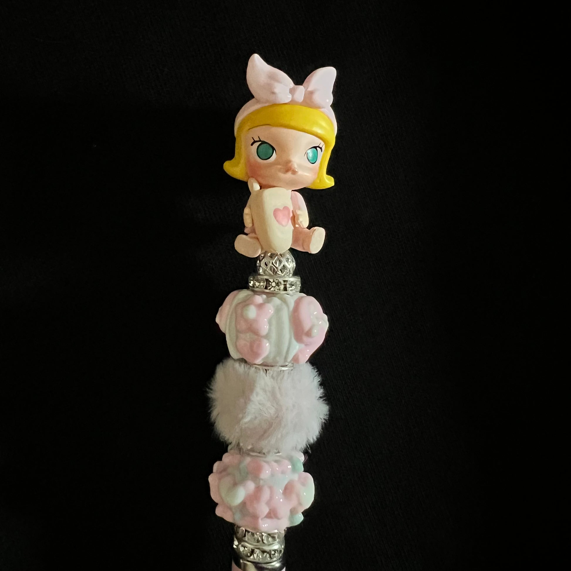 Hand-Painted Beaded Black Ball Pen with Surprise Mini Blind Box Figure – Pop Mart, Sanrio, TNTspace & More!